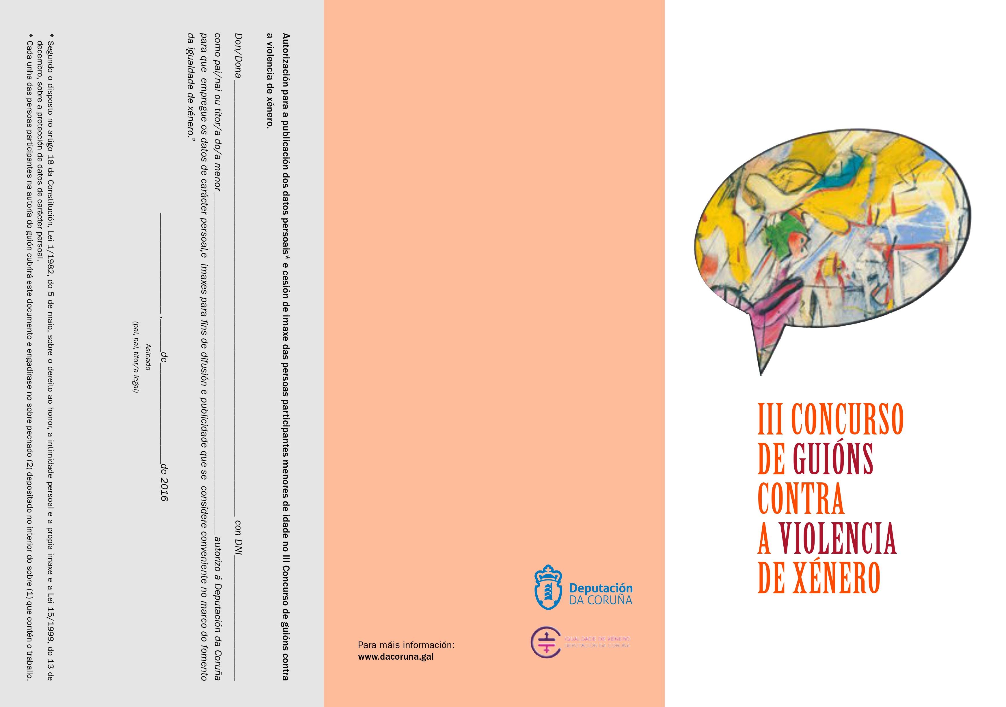 A Deputación Provincial da Coruña, Área de Benestar Social, Educación e Políticas de Igualdade. convoca o III concurso de guións contra a violencia de xénero.