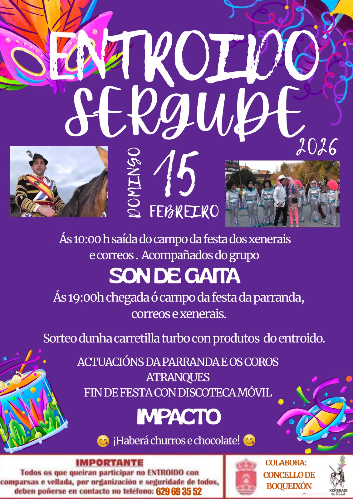 Sergude celebra este domingo 15 de febreiro a súa festa de Entroido, que inclúe a partir das 20:00 horas un dos famosos Atranques dos Xenerais da Ulla, festa declarada de interese turístico de Galicia. A festa dará comezo ás 10:00 horas coa saída do campo da festa dos Xenerais, Correos e Coros, que percorrerán esta parroquia de Boqueixón acompañados da música do grupo local Son de Gaita.