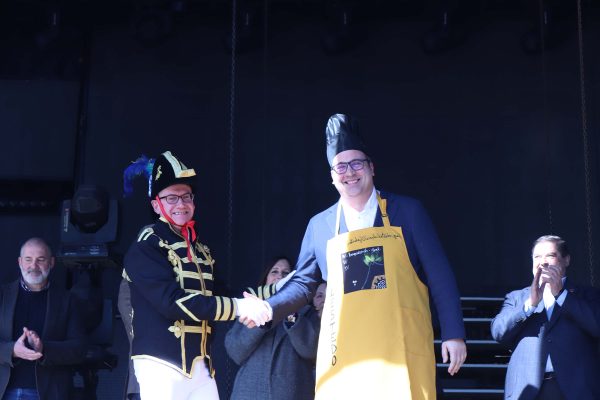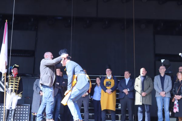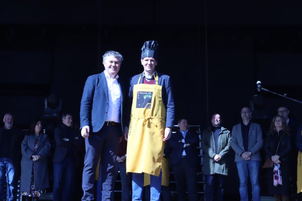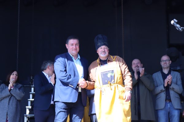 Un pregoeiro que foi unha das seis persoas distinguidas este ano pola Asociación Cultural da Filloa coa imposición do “Mandil de honra” da Filloa, deseñado por Carmen Pichel. Canda el tamén foron distinguidos polo seu apoio e colaboración coa Festa da Filloa de Lestedo: